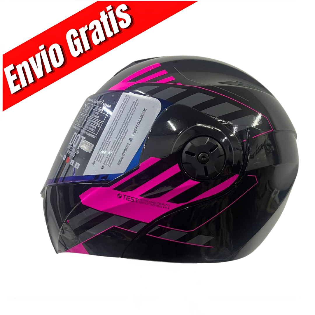 CASCO ABATIBLE ICH 3110 CICU (NEGRO BRILLANTE/FUCSIA) – VISOR AZUL