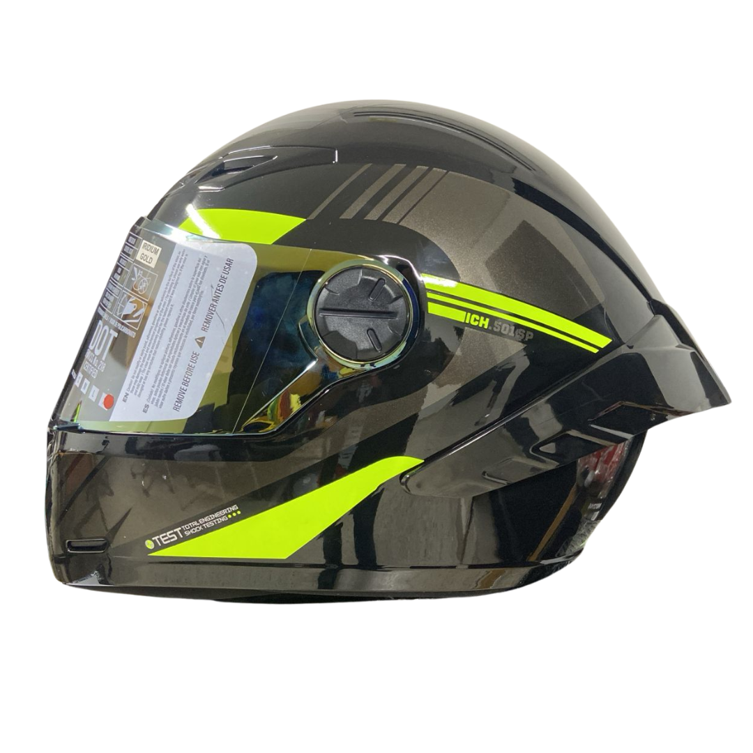 El casco integral ICH 501 SP Hadex combina un diseño llamativo con características de alta seguridad, ideal para quienes buscan protección, estilo y comodidad al conducir.