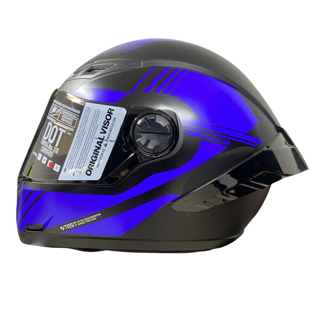 El casco integral ICH 501 SP Hadex en negro mate con detalles en azul es una excelente opción para motociclistas que buscan un equilibrio entre diseño moderno, comodidad y protección confiable.