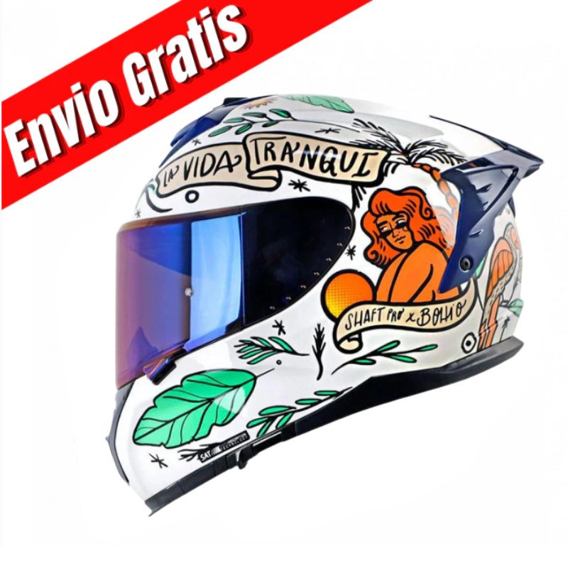 El Shaft Pro 610DV EVO edición La Buena Vida en blanco y verde es un casco integral que representa seguridad, estilo y actitud. Equipado con visor de color y visor adicional de obsequio, este modelo es perfecto para quienes buscan protección sin perder estilo en cada rodada.