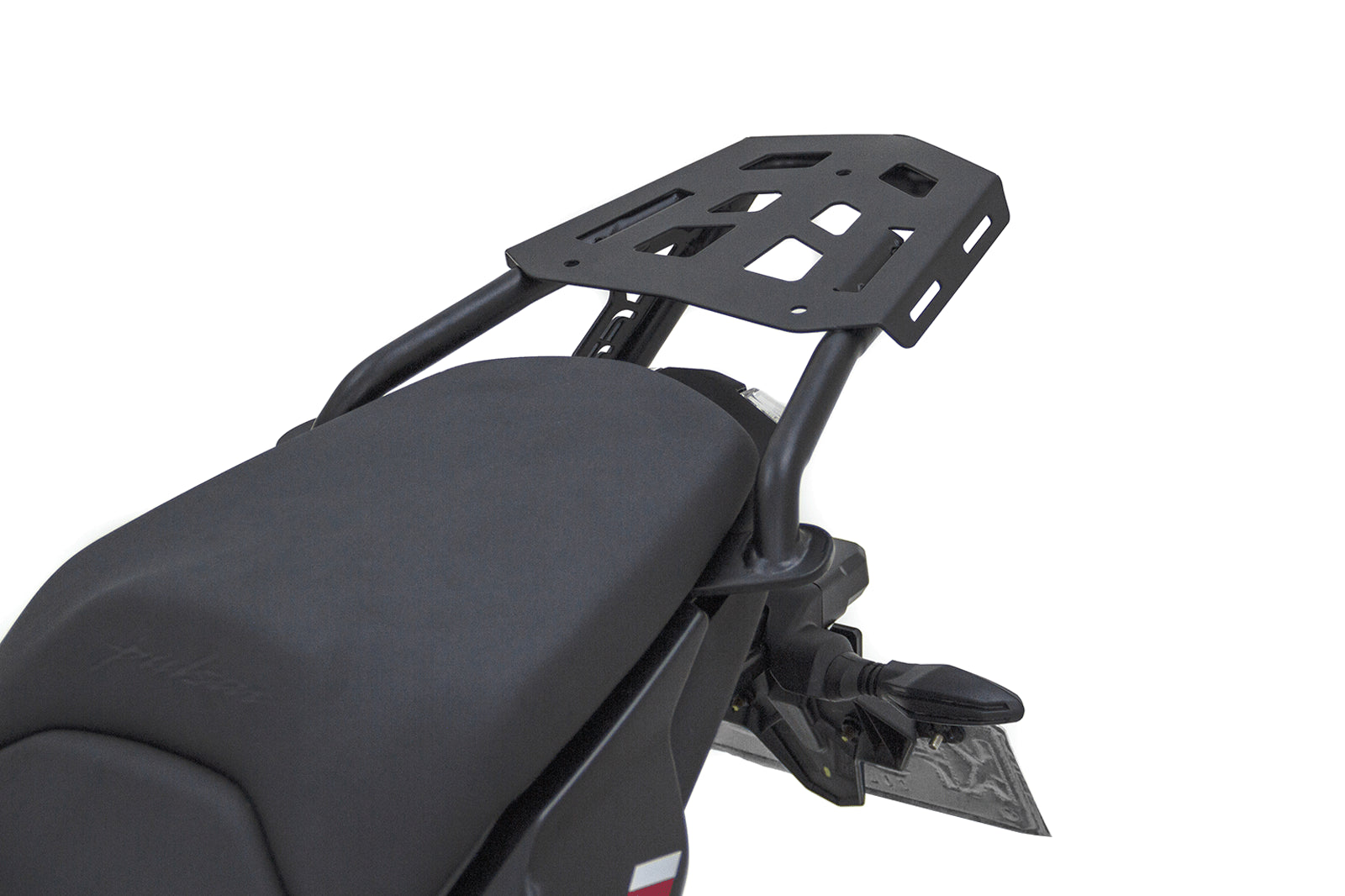 - Parrilla especialmente diseñada para la Pulsar N 250 Soporta cualquier baúl o maletero del mercado permitiendo montarlo en segundos. Puede montar una maleta o también amarrar cosas a ella. Su superficie plana en la parte superior permite instalar un maletín impermeable sin romperlo y es reforzada en su estructura para evitar fallos comunes en este tipo de herrajes de moto.