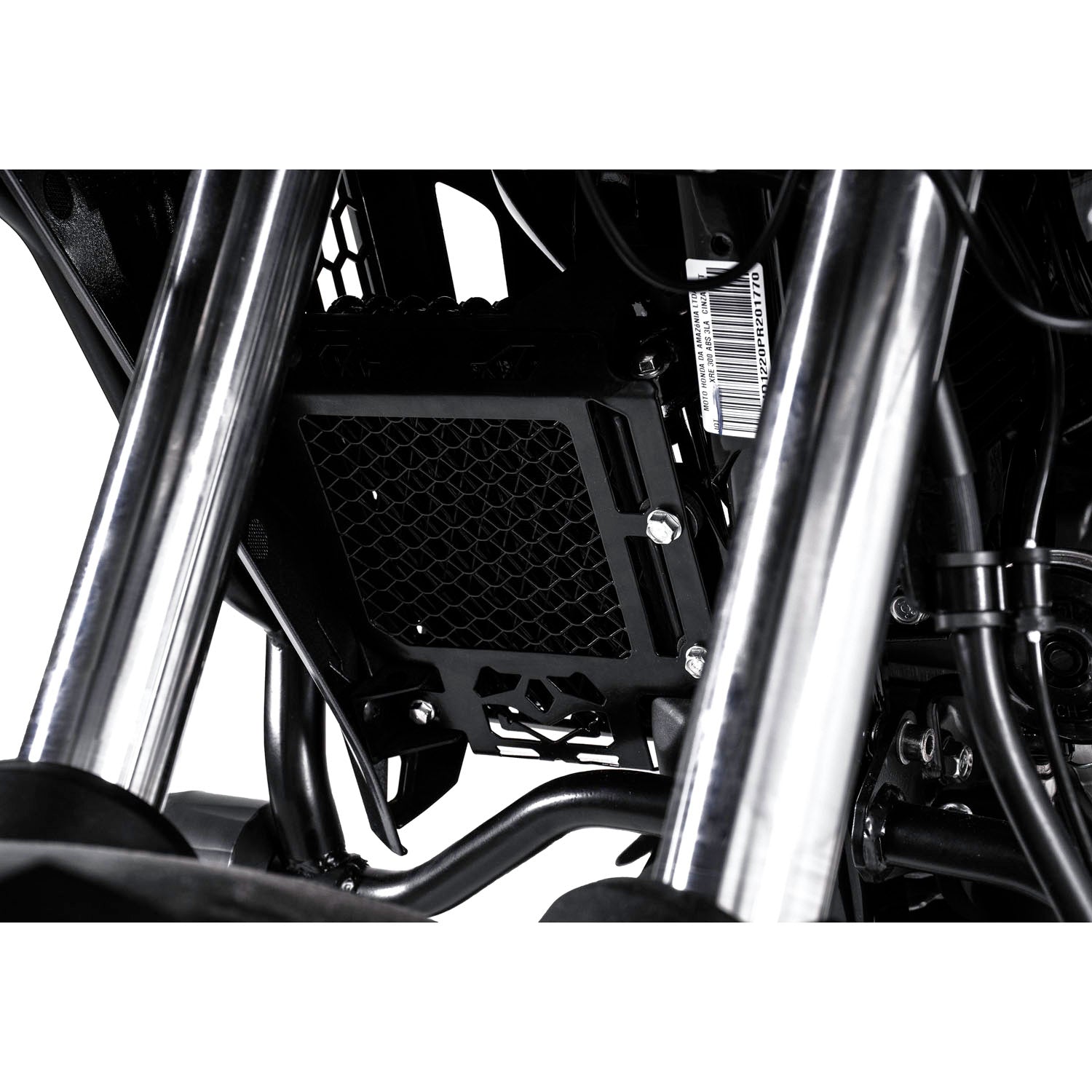 Protector de Radiador ARMO para Honda XRE 300 ABS: Este accesorio está específicamente diseñado para adaptarse al modelo Honda XRE 300 con sistema de frenos ABS. Fabricado con materiales resistentes, como acero o aleaciones ligeras, el protector de radiador se instala para resguardar la parte frontal del radiador contra posibles impactos de piedras, escombros u otros objetos en la carretera.